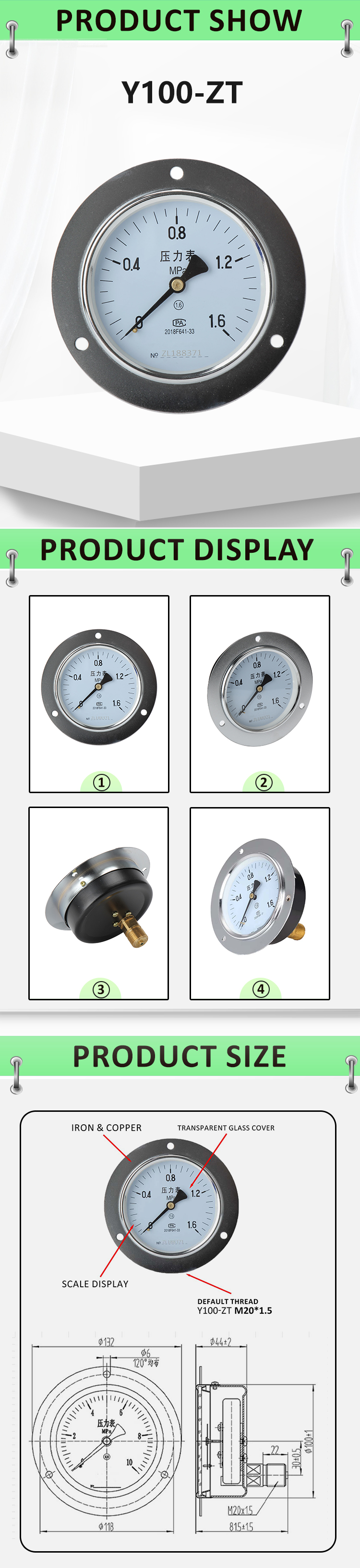 | TYPE | Y-ZT Series Axial Pressure Gauge With Flange Edge |
