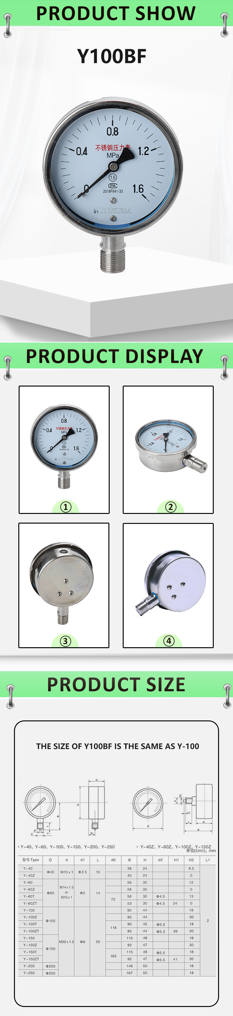 | TYPE | Y-BF Series Stainless Steel Pressure Gauge |