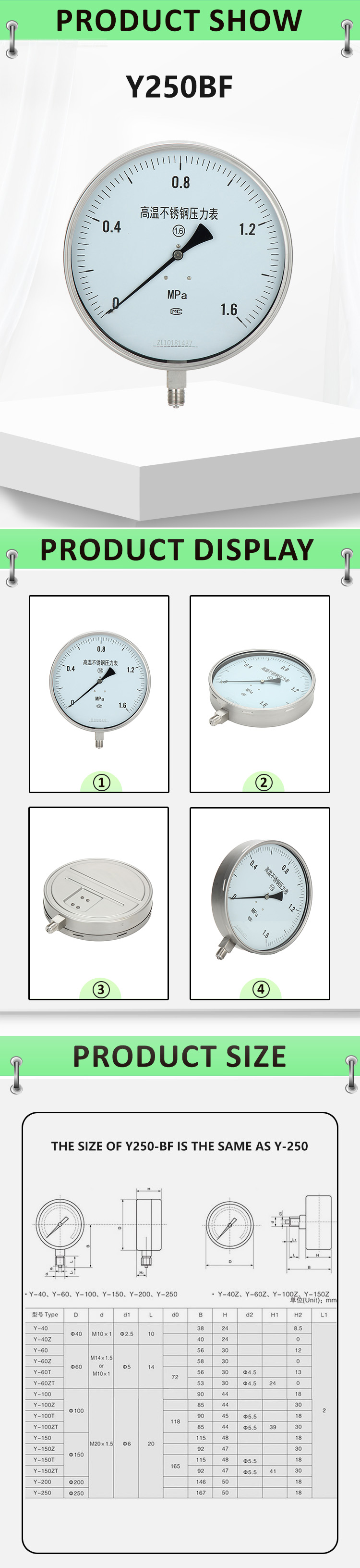 | TYPE | Y-BF Stainless Steel Pressure Gauge |