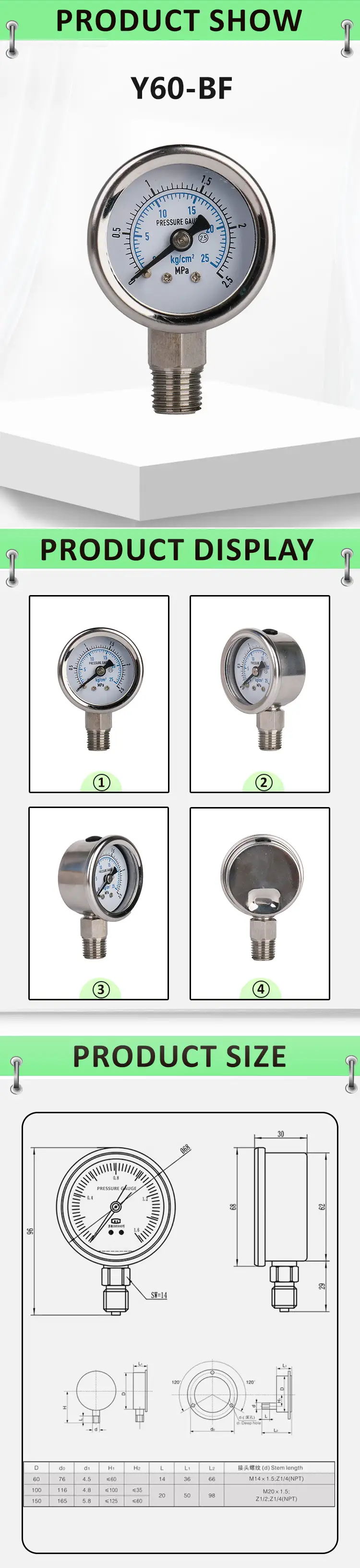 | TYPE | Y-BF Stainless Steel Pressure Gauge |