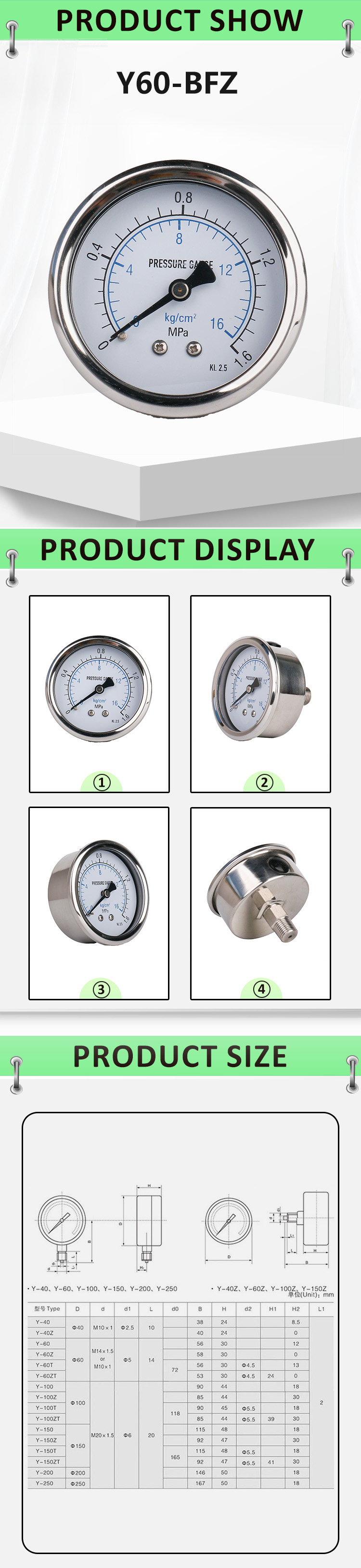 | TYPE | Y-BFZ Stainless Steel Axial Pressure Gauge |