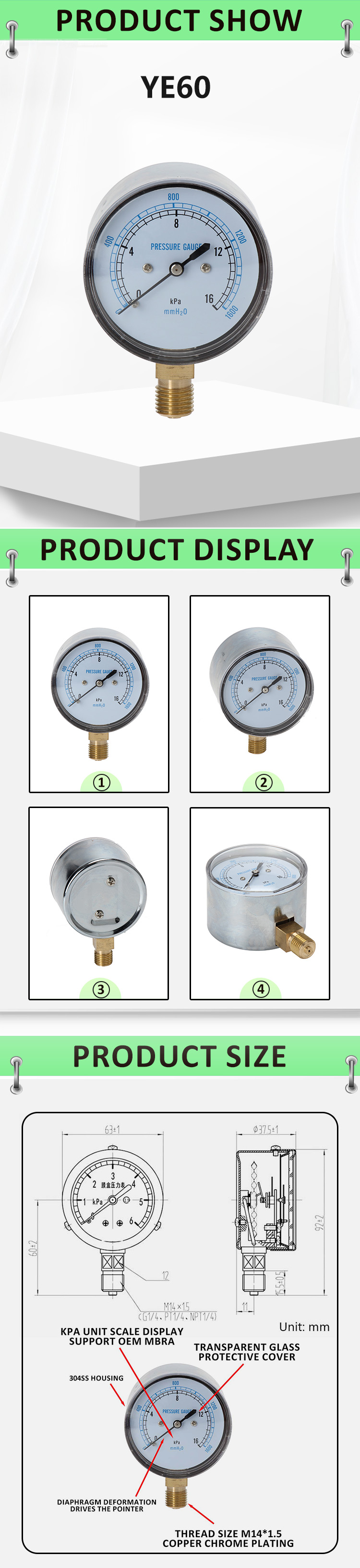 | TYPE | YE Diaphragm Pressure Gauge |