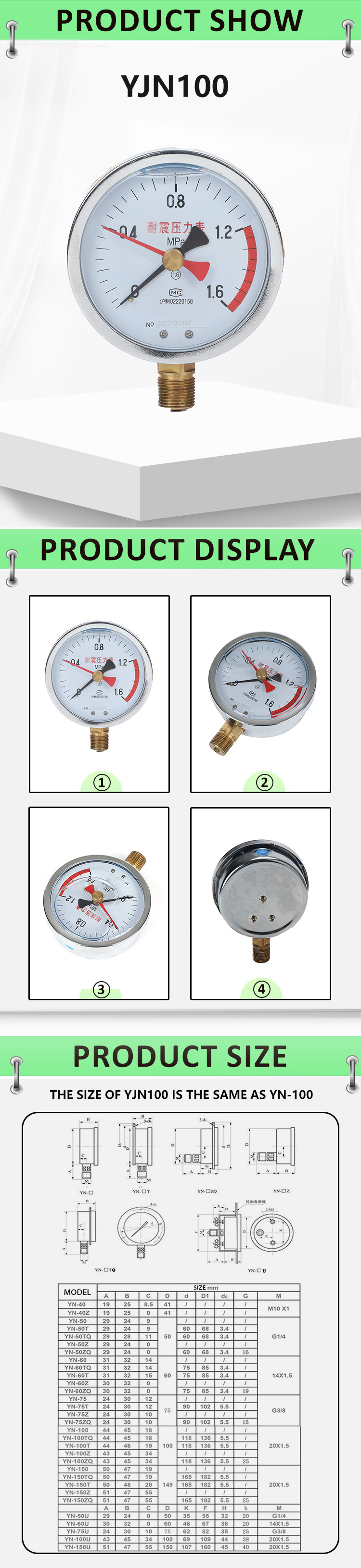 | TYPE | YJN Series Memory Shock-Proof Pressure Gauge Double Needle |