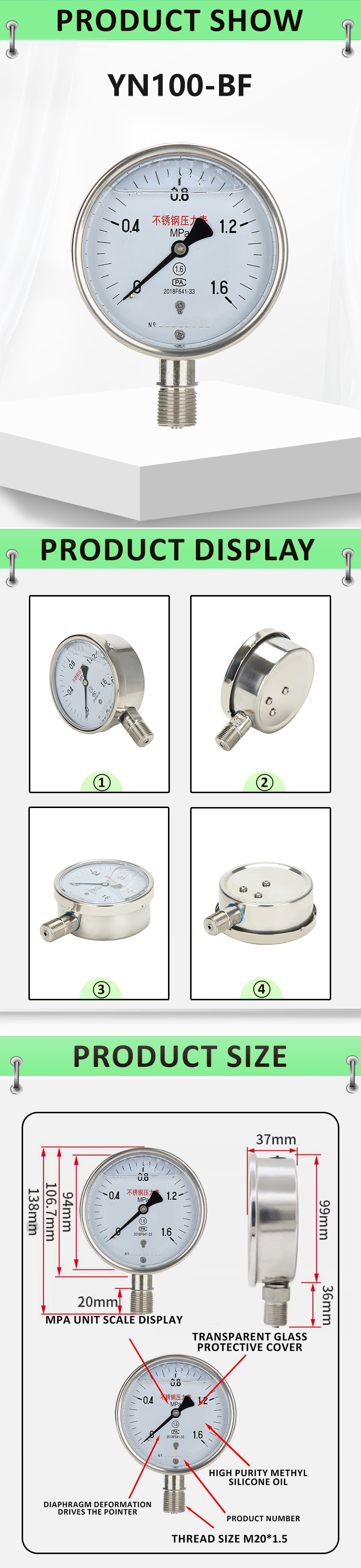 | TYPE | YN100 - BF Series Stainless Steel Shock - Resistant Pressure Gauge |