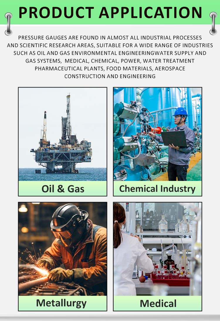 Our products are widely used in multiple industries, such as oil and gas, environmental engineering, building automation, precision electronics, medical, chemical, power, water treatment, pharmaceuticals, food materials, HVAC, aerospace, manufacturing, construction, and engineering. They are primarily used for measuring and monitoring parameters such as pressure and differential pressure. Whether in harsh industrial environments or highly precise production lines, our products can provide accurate and reliable pressure measurement solutions