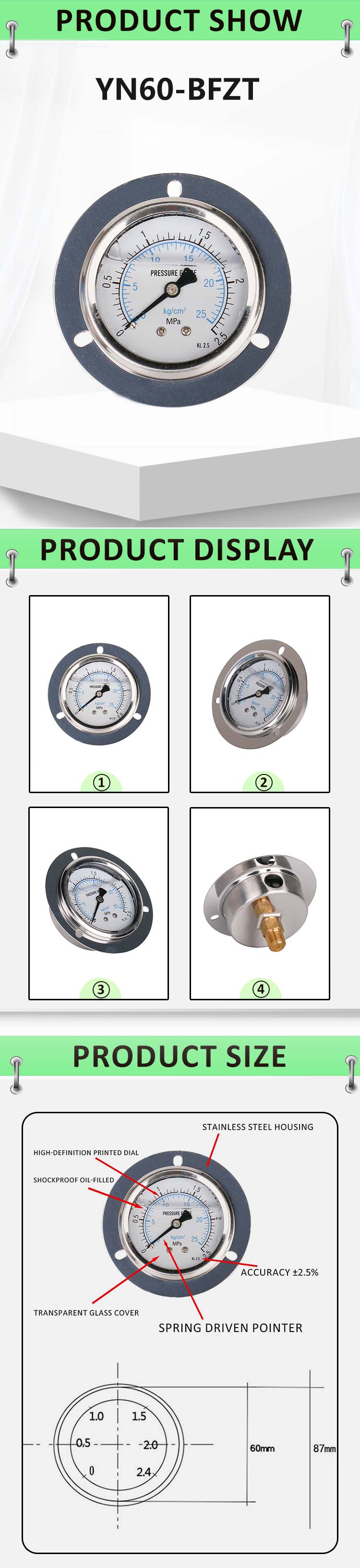 | TYPE | YN-BFZT Stainless Steel Shock-Proof Axial Pressure Gauge With Flange Edge |