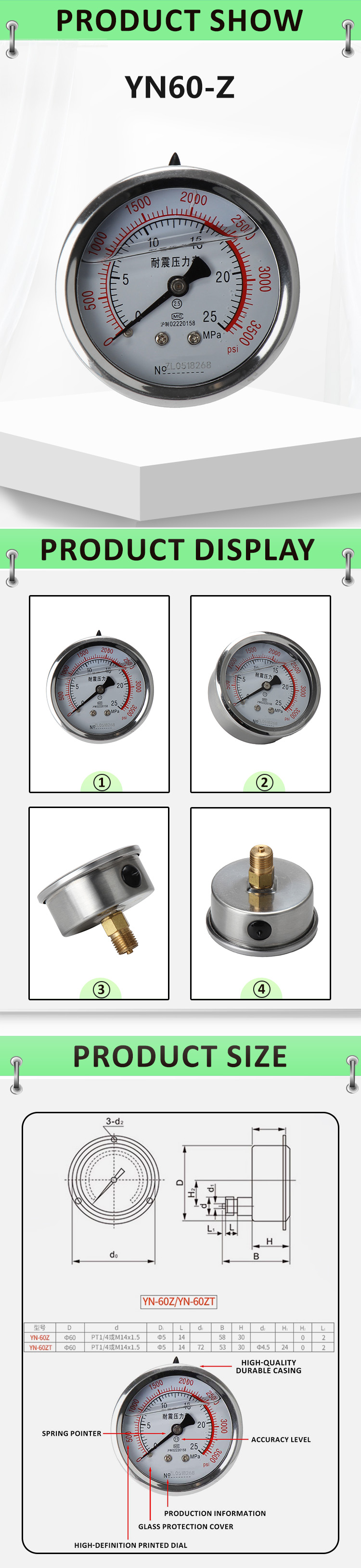 | TYPE | YN-Z Axial Shock Proof Pressure Gauge |