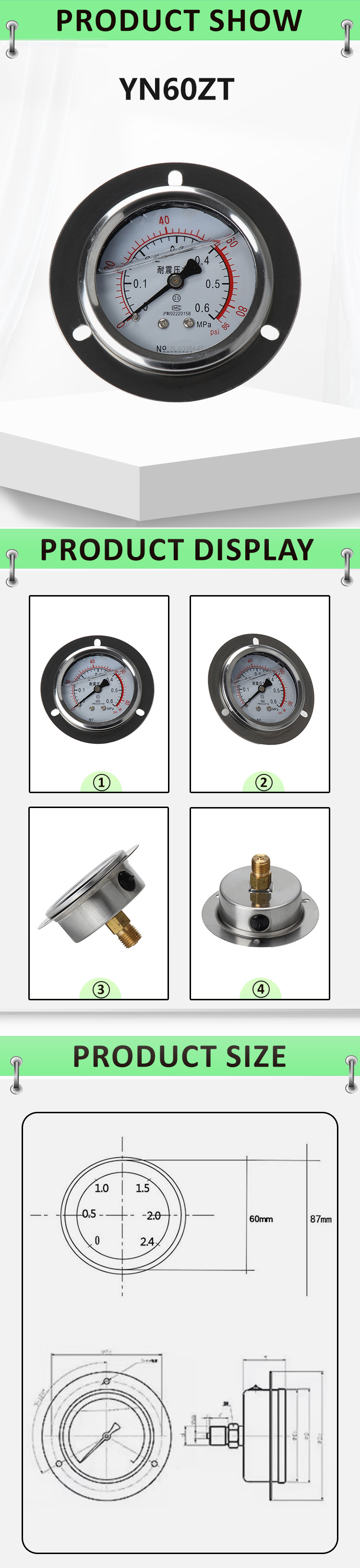 | TYPE | YN-ZT Axial Shock-Proof Pressure Gauge With Behind Flange Edge |