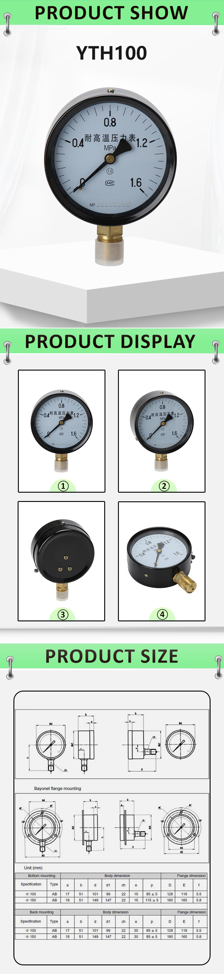 | TYPE | YTH Series High Temperature Pressure Gauge |